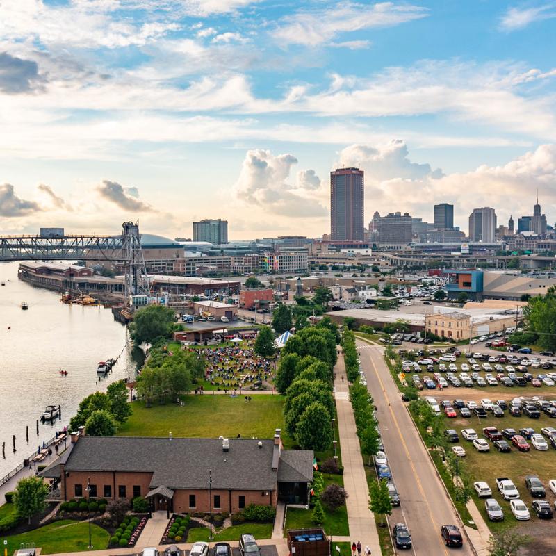 Situated in the historic First Ward of Buffalo’s waterfront and seated on the banks of the Buffalo River, The Tewksbury Lodge is located within Buffalo River Fest Park, offering stunning views of the downtown skyline, massive grain elevators, and a gorgeously landscaped park.