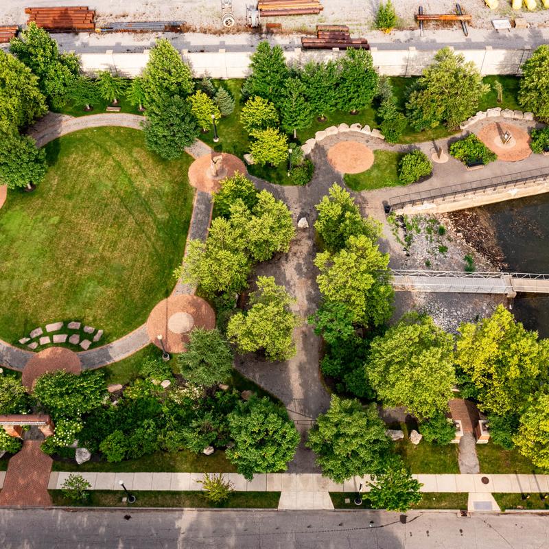 Buffalo River Fest Park, a 3-acre park opened in 2011 and is situated at 249 Ohio Street on the Buffalo River. A former vacant industrial site which was littered with contaminated debris, high weeds, broken fences, curbs and sidewalks. The park now features a boardwalk along the Buffalo River, interpretive signs, a pergola, benches, walkways, a band shell, a wharf out over the river and lush gardens.